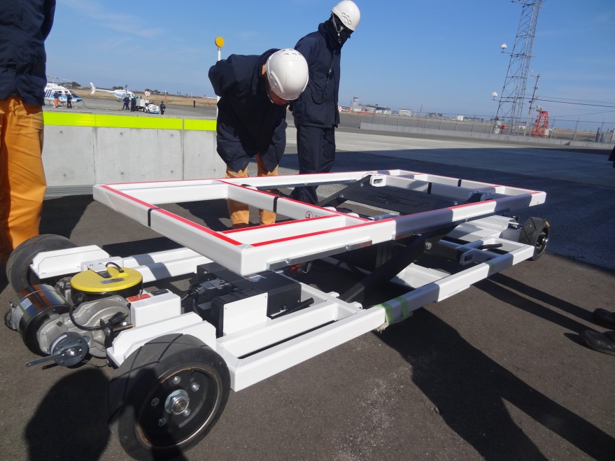 TOP > 航空機装備品事業 > 海上保安庁 <運搬機> 海上保安庁 <運搬機> 2018年3月納品 装備品ー 設計ー 施工ー 実施内容ヘリウォーカー(スキッド式用運搬機)販売 ヘリウォーカー(スキッド式用運搬機)販売 平成30年3月に海上保安庁様へBell505型用の自走式運搬機を2台納入。 back 一覧 next 一覧