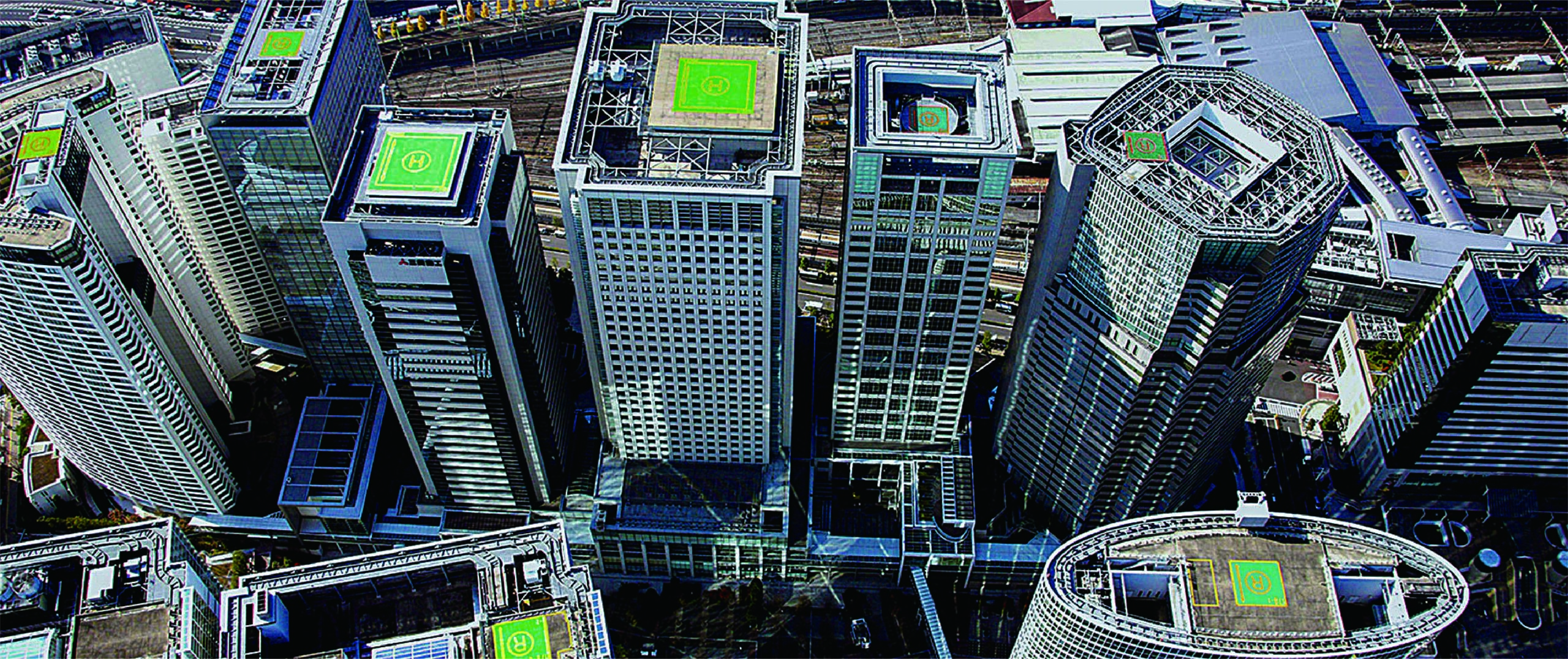 高層ビルの屋上には必ず消防ヘリが救助活動や消火活動をするための施設があります。「緊急離着陸場」あるいは「緊急救助用スペース」です。通称「Hマーク」「Rマーク」と呼ばれています。