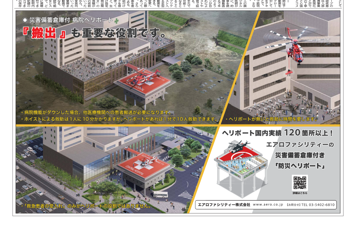 当社がコンサル設計施工を手がけた市立青梅総合医療センターのヘリポートについて、特集記事で紹介されました。